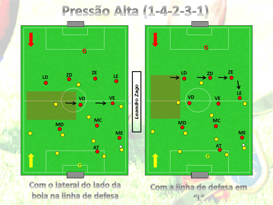referida plataforma tática. No primeiro modelo, a “linha de 4” defensiva fica